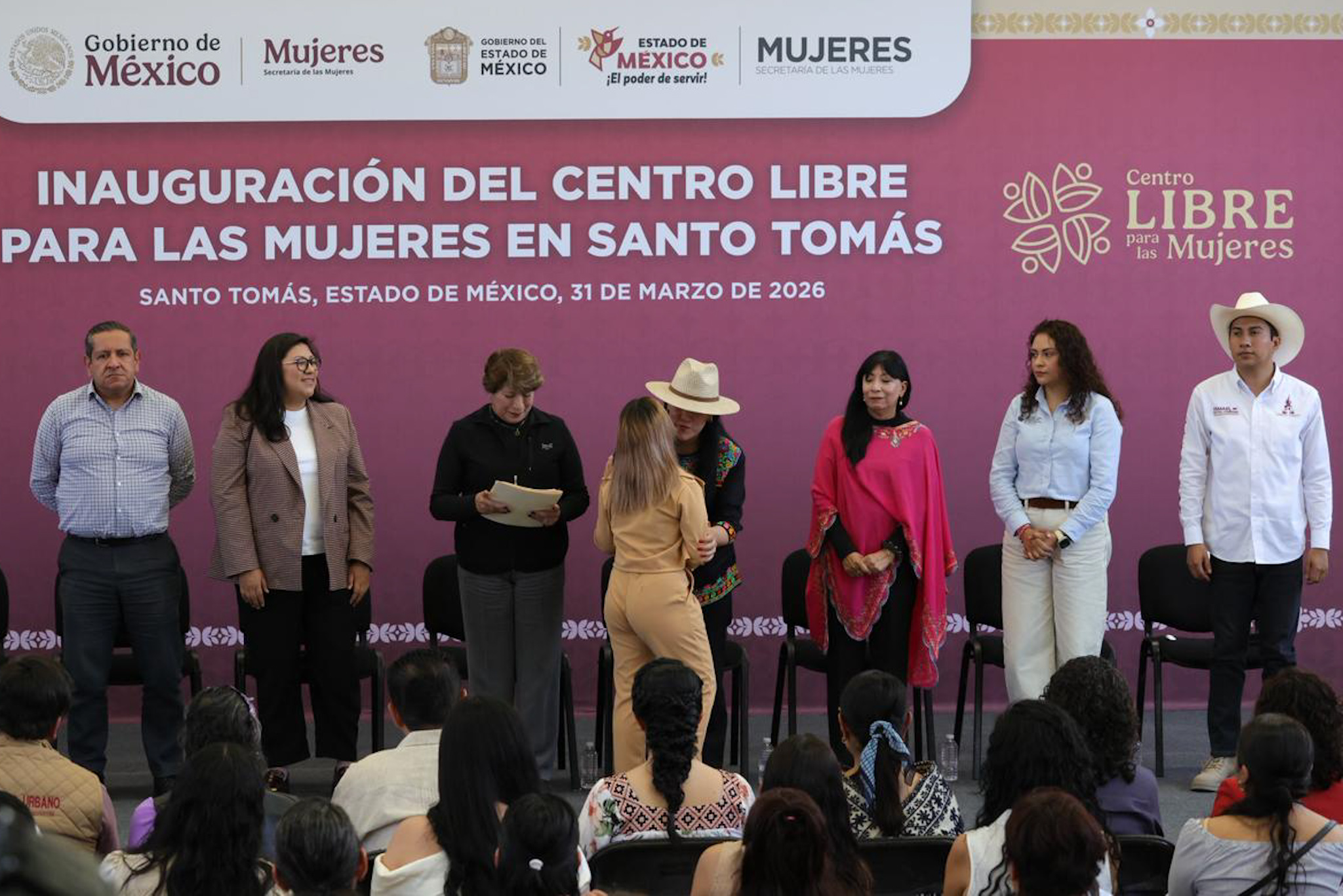 La diputada Martha Azucena Camacho Reynoso (morena), presidenta de la Directiva de la LXII Legislatura mexiquense, asistió a la inauguración del Centro LIBRE (Libertad, Igualdad, Bienestar, Redes y Emancipación) para las mujeres en Santo Tomás, evento encabezado por la gobernadora Delfina Gómez Álvarez.