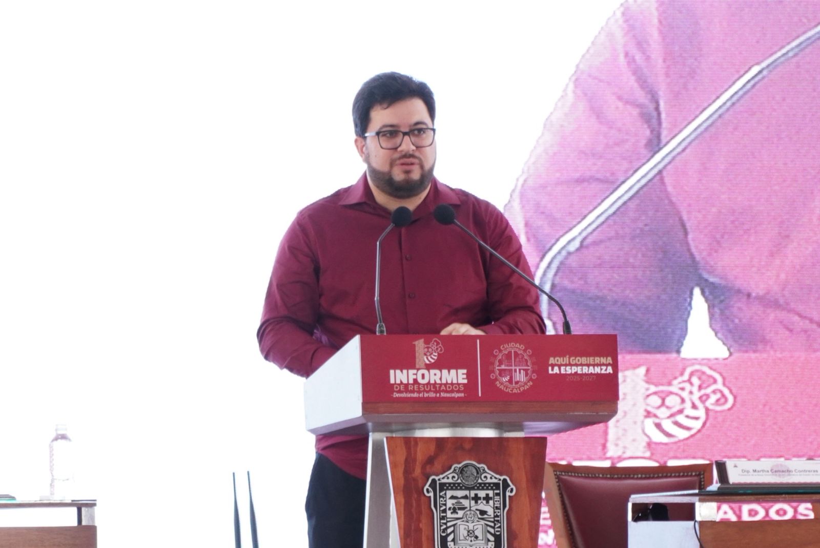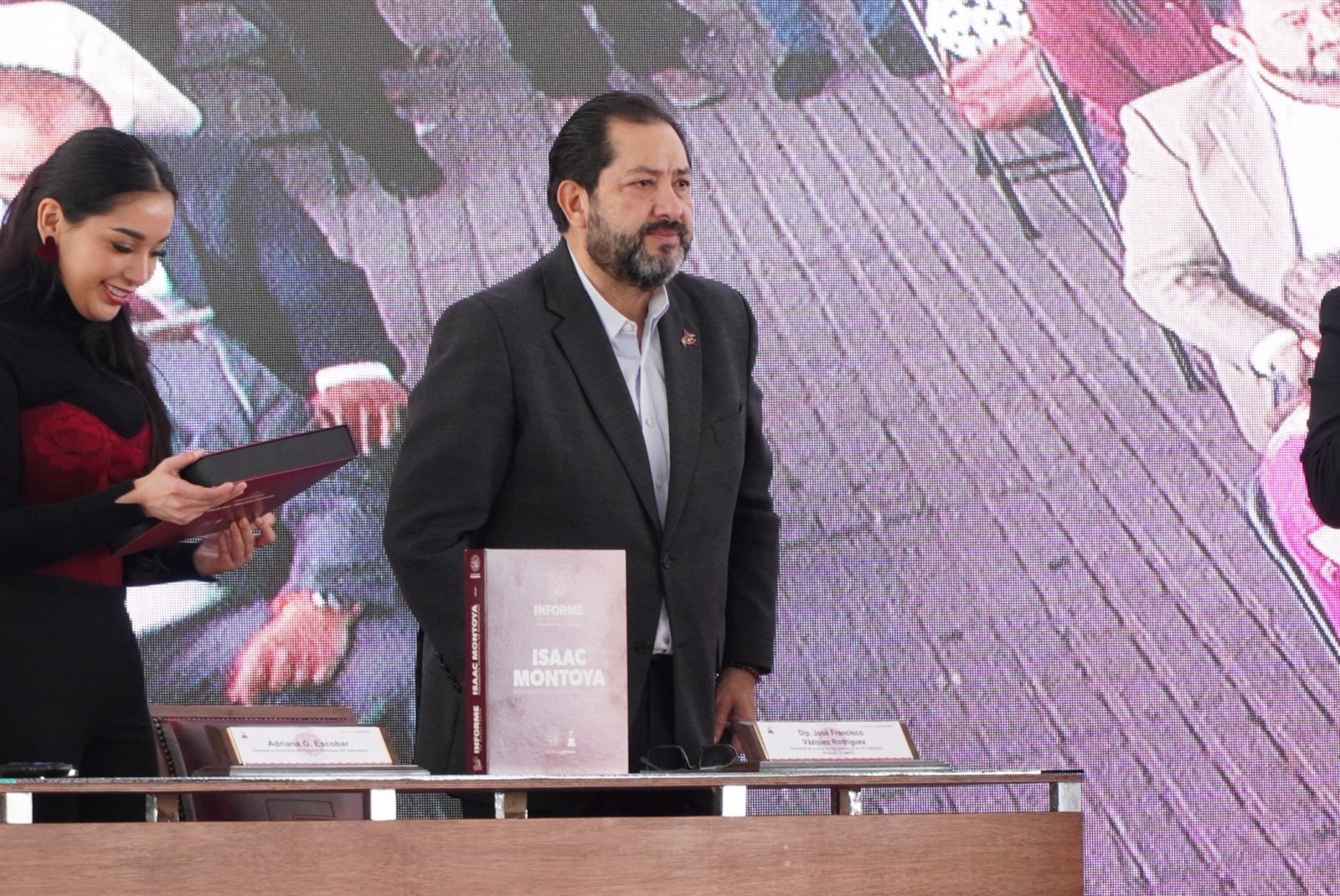 El diputado José Francisco Vázquez Rodríguez (morena), presidente de la Junta de Coordinación Política, y la legisladora Martha Azucena Camacho Reynoso (morena), presidenta de la Directiva del Congreso mexiquense, asistieron, junto a la gobernadora Delfina Gómez Álvarez y el magistrado Héctor Macedo García, presidente del Tribunal Superior de Justicia del Estado de México, al Informe de Resultados del alcalde de Naucalpan, Isaac Martín Montoya Márquez.