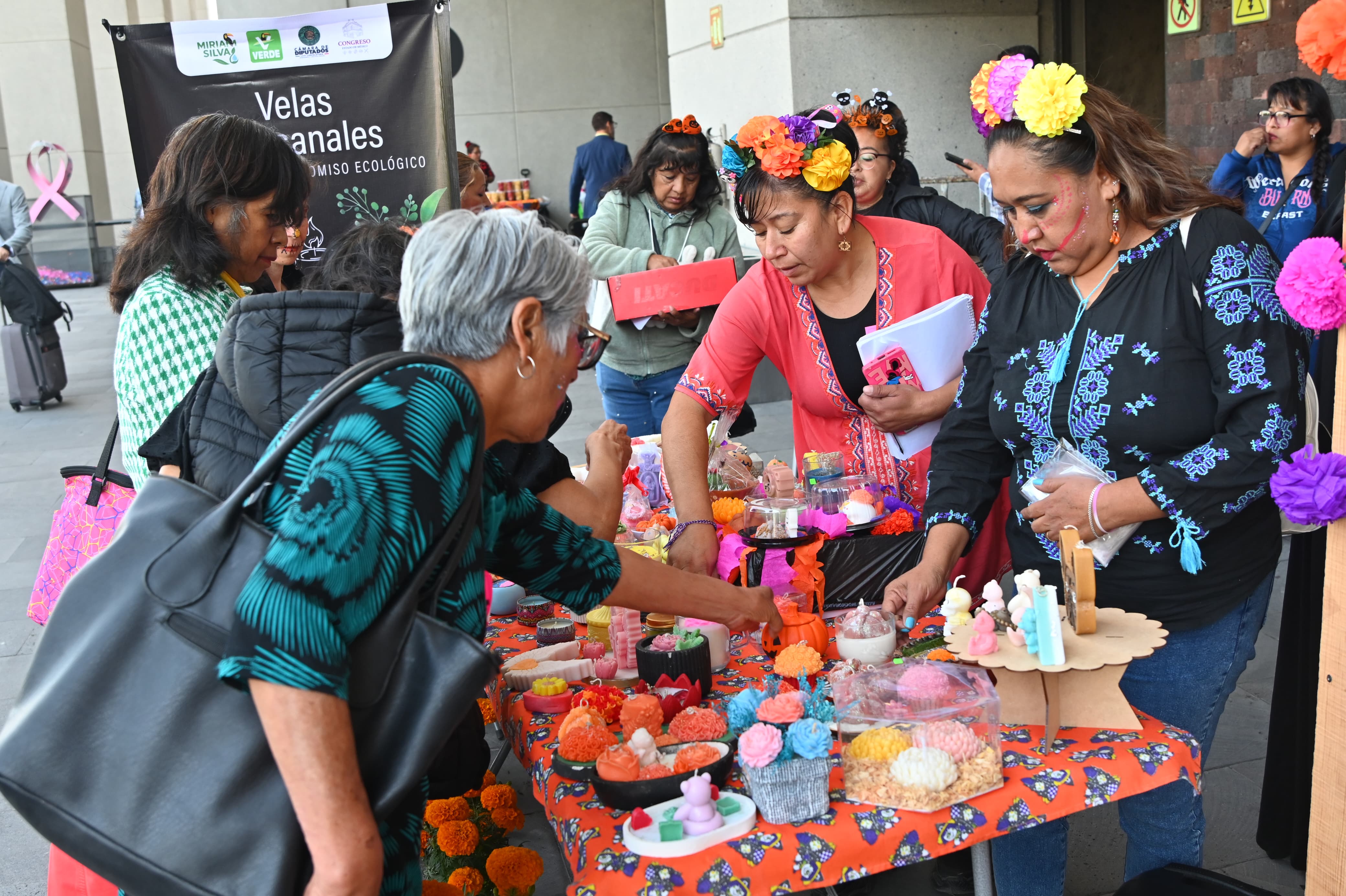 En la Cámara de Diputados del Congreso de la Unión, en la Ciudad de México, la diputada Miriam Silva Mata (PVEM) inauguró la expoventa “Mercado Artesanal”, organizada por el grupo de mujeres Las Verdes de Ecatepec, quienes participan en talleres de elaboración de velas aromáticas que la legisladora impulsa como parte de su trabajo comunitario, con el propósito de fortalecer el comercio local.