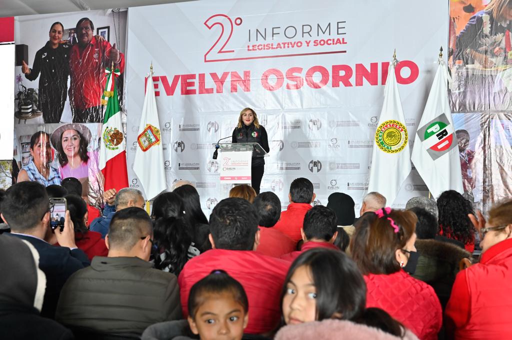 Con la premisa de escuchar y mantener comunicación con la población, la diputada Evelyn Osornio Jiménez (PRI) presentó su 2º Informe Legislativo y de Gestión Social en el que destacó su labor como presidenta de la Comisión de Vigilancia del Órgano Superior de Fiscalización (OSFEM) en la aprobación de más de 20 auditorías especiales, en tanto que el grupo parlamentario del PRI impulsó la actualización y reestructuración de más de 60 leyes estatales.
