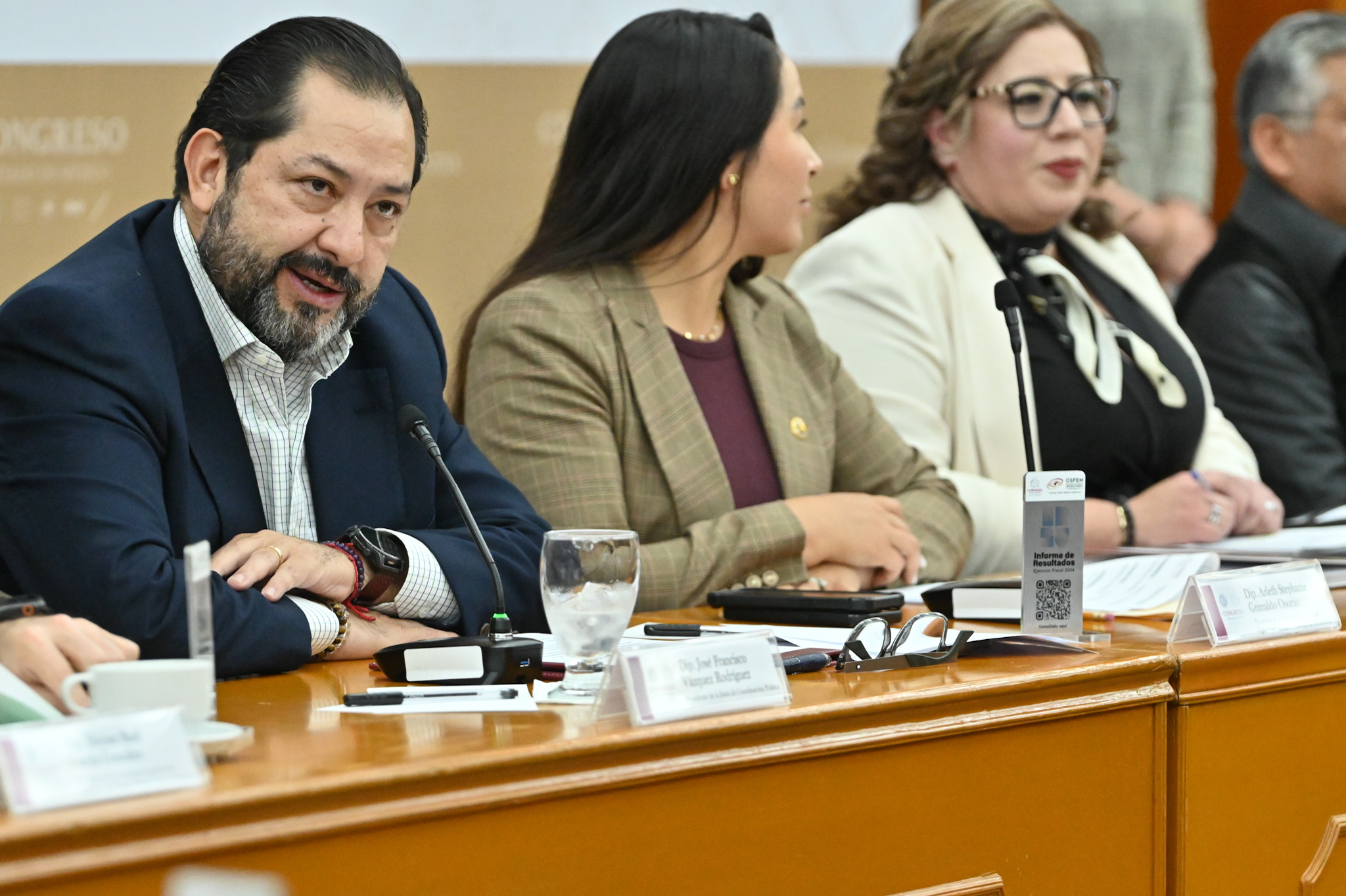 Agradeció el apoyo de los integrantes de la LXII Legislatura, al Presidente de la Junta de Coordinación Política, Diputado José Francisco Vázquez Rodríguez; y a la Presidenta de la Comisión Legislativa de Vigilancia, Diputada Arleth Stephanie Grimaldo Osorio, por su respaldo y colaboración que han sido fundamentales para avanzar en la mejora de los procesos.