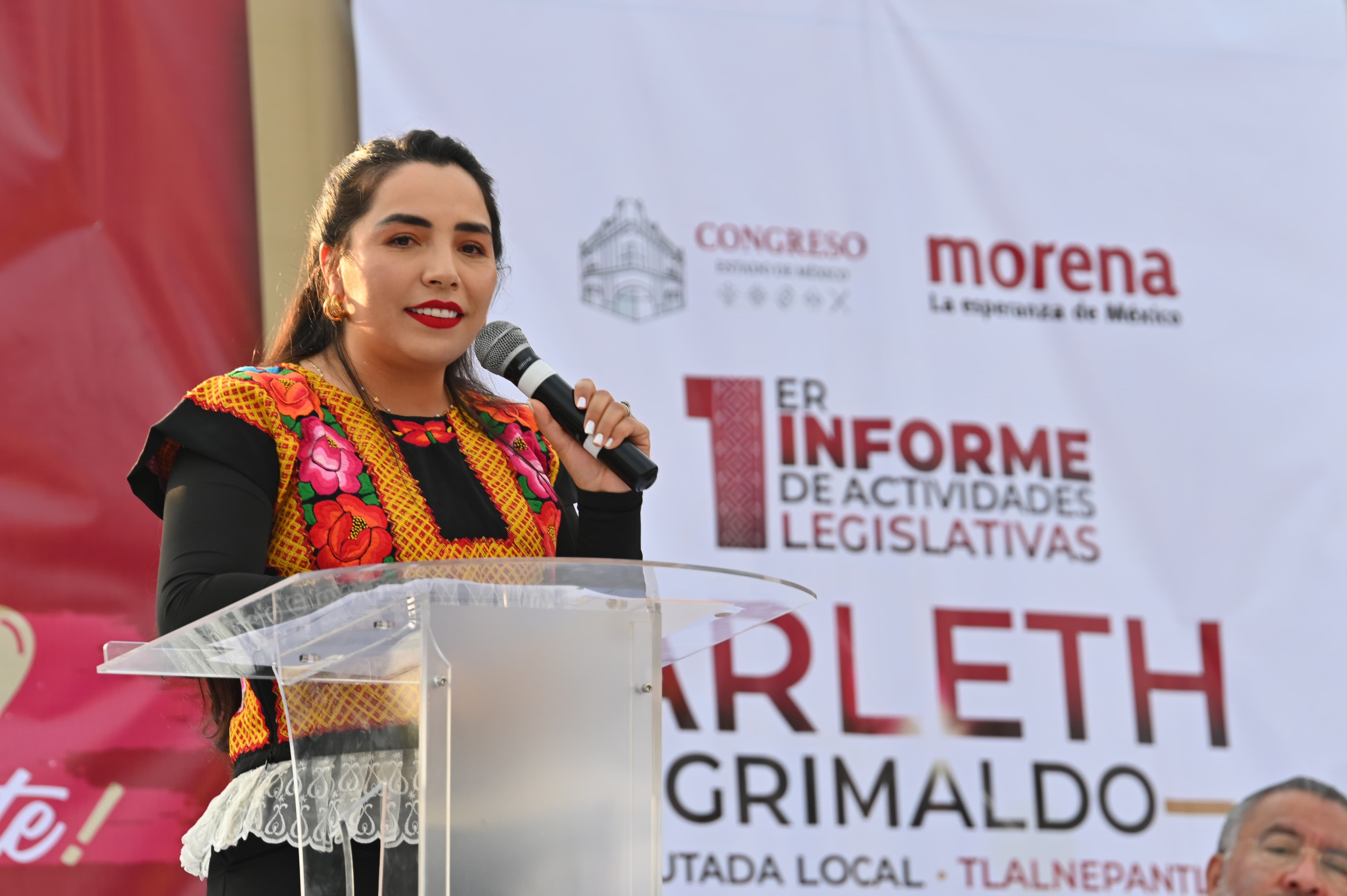 - La diputada Arleth Grimaldo (morena) rindió su Primer Informe de Actividades Legislativas y de Gestión Social, en el cual destacó el impulso a programas de esterilización de animales en situación de calle, de deschatarrización, así como la rehabilitación de infraestructura y limpieza de barrios y colonias del Distrito Local Electoral 37 de Tlalnepantla.