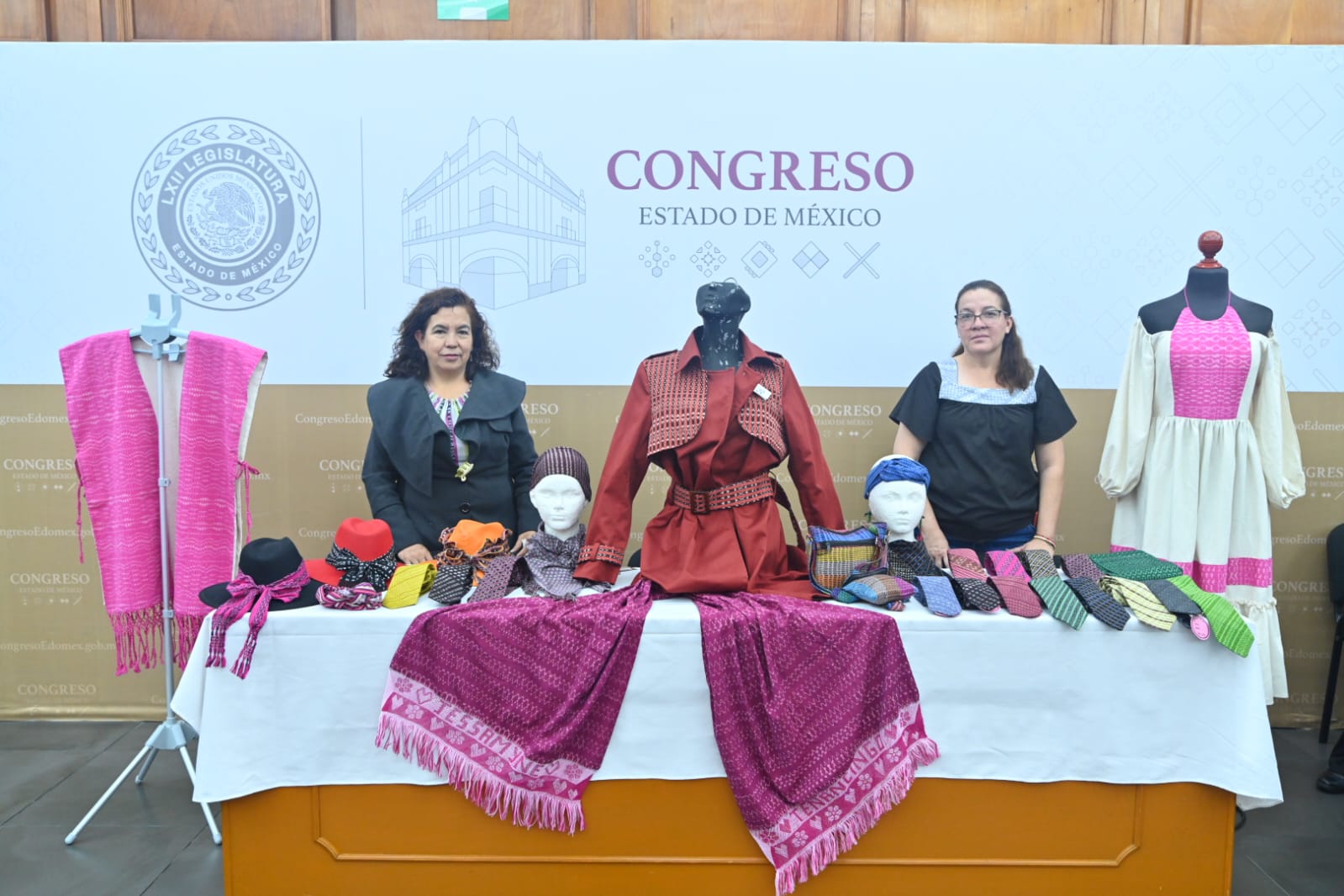 - En el Congreso mexiquense, la diputada Arleth Grimaldo promovió la ‘Exposición de Moda Artesanal: Identidad en cada puntada’, que reunió a personas artesanas de los estados de México y Oaxaca.
