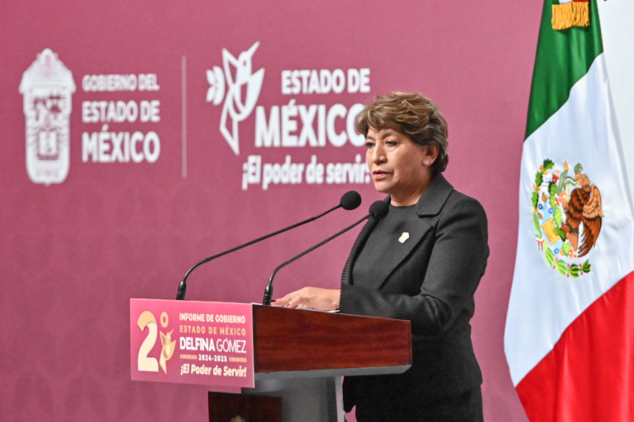 Al rendir su Segundo Informe de Gobierno, la gobernadora Delfina Gómez Álvarez reconoció al Congreso mexiquense por el respaldo brindado a su administración, por lo que agradeció a las, le y los diputados locales la aprobación, por unanimidad, del Presupuesto de Egresos 2025, así como del 90 por ciento de las 102 iniciativas que envió para su deliberación.